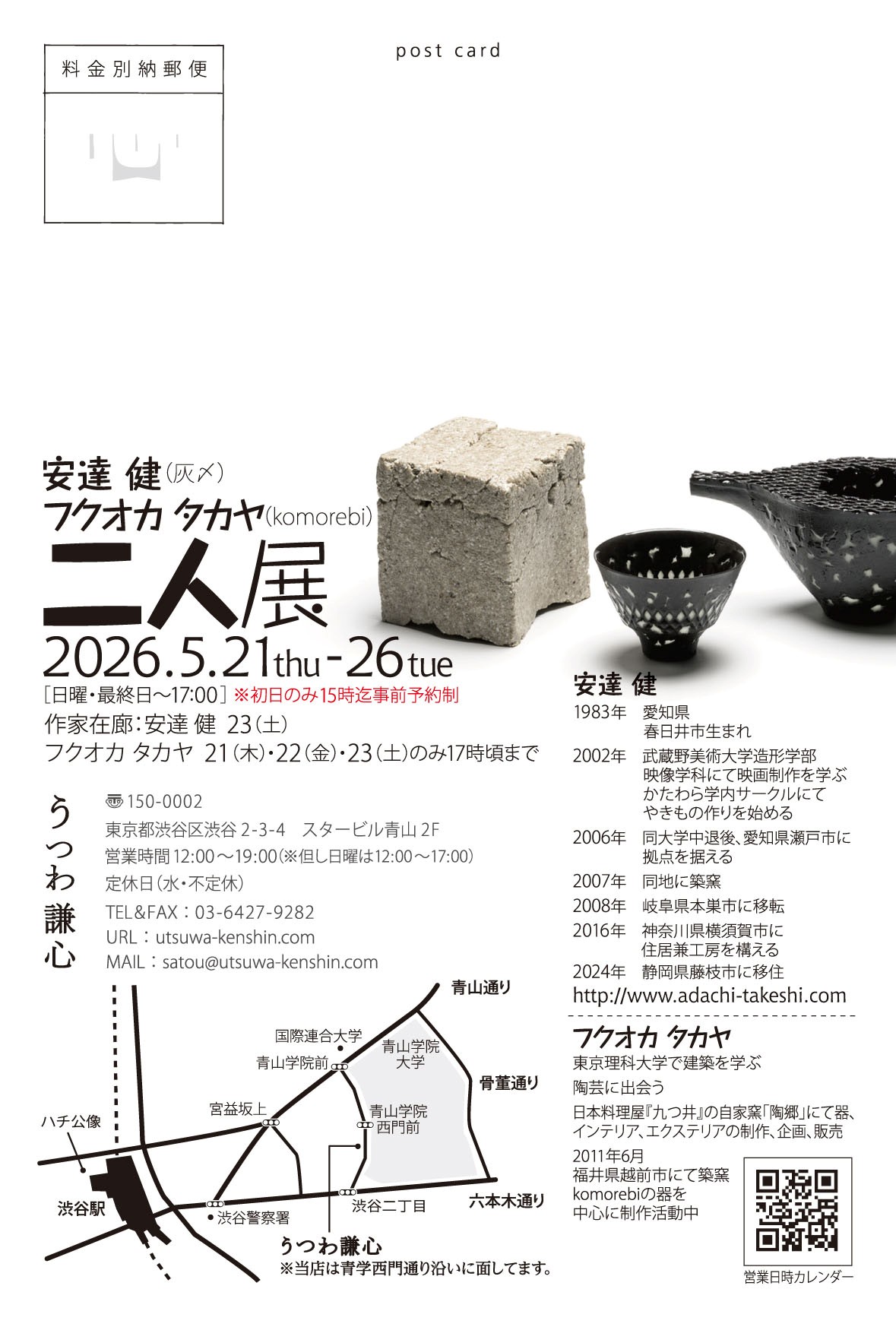『安達健(灰〆)・フクオカタカヤ(komorebi)二人展』